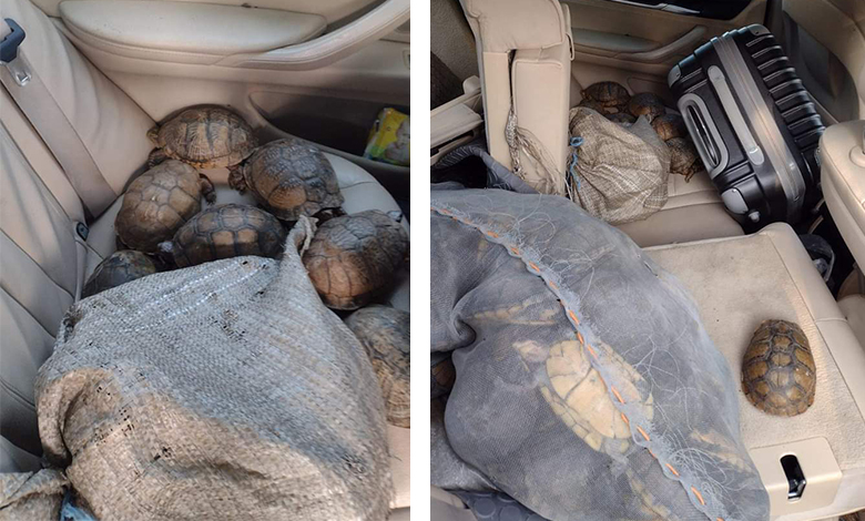 Los efectivos realizaron la inspección a la camioneta para descartar la comisión de algún delito; en el interior observaron el movimiento de los caparazones desde dentro de los costales.