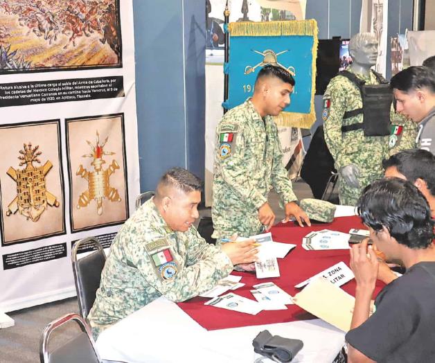 Durante la realización de la Primera Feria Regional del Empleo en Reynosa, el módulo del Ejército Mexicano fue uno de los que más atrajo el interés y atención de jóvenes, interesados en conocer las ventajas que ofrece el reclutamiento y carrera militar de servicio.