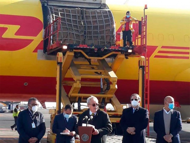 Recibe el canciller Marcelo Ebrard lote de 439 mil vacunas de Pfizer; destaca que programa…